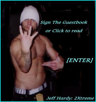 Thanx for signing! Please note: This is a fansite and is in no way affiliated with Jeff Hardy or WWE. Therfore any messages directed to Jeff Hardy himself are certainly not guaranteed to be read by him.